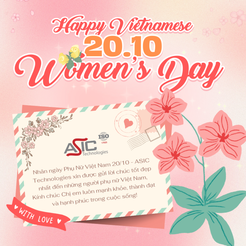 Nhân ngày Phụ Nữ Việt Nam 20/10 – ASIC Technologies xin gửi lời tri ân và lời chúc đến Quý Khách hàng, Quý Đối tác cùng toàn thể CBNV nữ một ngày 20/10 thật ý nghĩa, hạnh phúc bên gia đình và những người thân yêu! Chúc Chị em luôn mạnh khỏe, thành đạt và hạnh phúc trong cuộc sống!