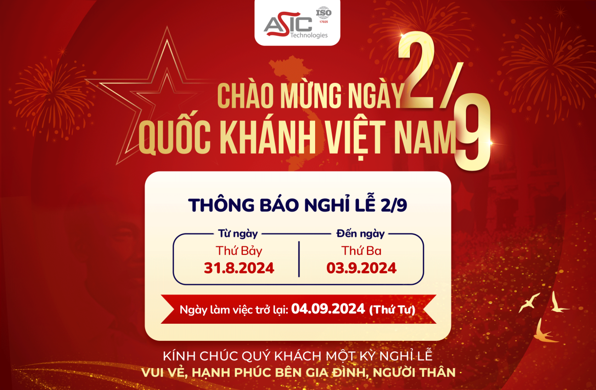 Kỷ niệm 79 năm Quốc khánh nước CHXHCN Việt Nam (2/9/1945 – 2/9/2024), ASIC Technologies xin thông báo tới Quý khách hàng lịch nghỉ lễ Quốc khánh 2/9 như sau: