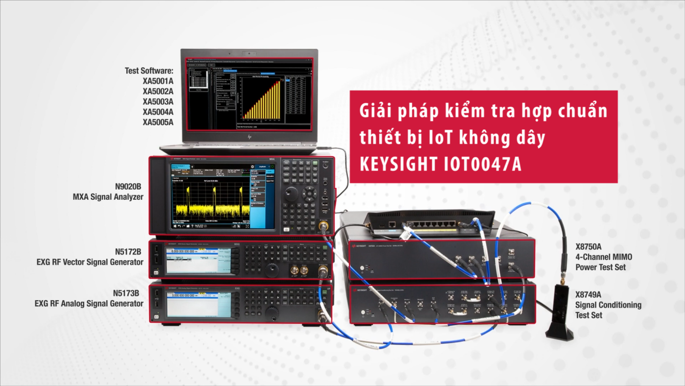Giải pháp kiểm tra hợp chuẩn thiết bị IoT không dây Keysight IOT0047A giúp việc kiểm tra thiết bị IoT không dây băng tần 2,4 GHz / 5 GHz không có giấy phép trở nên dễ dàng và hiệu quả.