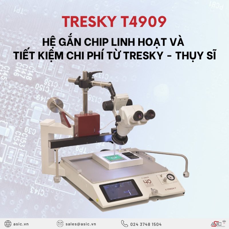 Trong quy trình sản xuất vi mạch bán dẫn, bước gắn chip (die bonding) là một trong những công đoạn quan trọng nhất, quyết định độ tin cậy và hiệu suất của linh kiện. Đây cũng là giai đoạn đòi hỏi độ chính xác rất cao, khả năng căn chỉnh ổn định và tính linh hoạt để phù hợp với nhiều công nghệ đóng gói (packaging) khác nhau. Với hơn 40 năm kinh nghiệm trong ngành lắp ráp vi mạch, Tresky, thương hiệu nổi tiếng đến từ Thụy Sĩ đã phát triển nhiều dòng máy gắn chip đáp ứng yêu cầu khắt khe của thị trường, trong đó nổi bật là giải pháp Tresky T4909.