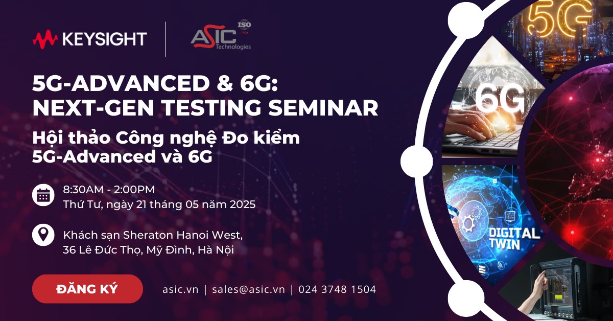 Nhằm đồng hành cùng định hướng của Chính phủ về thương mại hóa 5G và nghiên cứu 6G theo Công điện 47/CĐ-TTg ngày 22/4/2025, ASIC Technologies phối hợp cùng Keysight Technologies – tập đoàn hàng đầu thế giới trong lĩnh vực đo lường điện tử tổ chức hội thảo chuyên đề: “Công nghệ Đo kiểm 5G Advanced và 6G”.