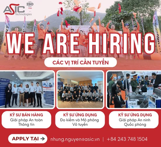 Nhằm đáp ứng nhu cầu phát triển mạnh mẽ trong năm 2025, ASIC Technologies đang tìm kiếm các ứng viên tiềm năng cho nhiều vị trí quan trọng. Đây là cơ hội dành cho những bạn đam mê công nghệ, mong muốn làm việc cùng các giải pháp đo kiểm – mô phỏng hiện đại và hệ thống an toàn thông tin tiên tiến hàng đầu thế giới.
